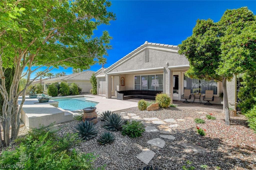 WONDERFUL PROPERTY IN & OUT WITH A SPARKLING POOL & CASCADING WATER FEATURES, PARTIAL GOLF VIEW, FULLY FENCED REAR, CUL-DE-SAC LOCATION ADDING EVEN MORE PRIVACY, OWNED SOLAR PANELS THAT ARE TRANSFERABLE SO NO FEES, NEWER HVAC, APPROX 1719/SF,6110 MODEL, 2 BED, 2 BATH, OPEN DEN W/ B/INS, KITCHEN W/ GRANITE, ISLAND, WHITE CABINETS, GREAT RM W/ FIREPLACE & B/INS, LAUNDRY RM W/ WASHER, DRYER & CABS, HOBBY RM FOR EXTRA SPACE OR STORAGE, TILE, LAMINATE WOOD FLOORING, SHUTTERS, DRAPERIES, FANS W/ LIGHTS, SOLAR SCREENS, ROLLADENS ON PRIMARY BED WINDOWS, DOUBLE ENTRY DOOR, PAVER DRIVE & WALKWAY, COVERED PATIO, 2 CAR GARAGE, PLUS MORE, INCLUDING ALL AMENITIES 'SIENA' IN SUMMERLIN OFFERS!